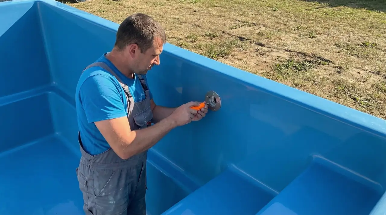 Монтаж таких элементов должен выполняться квалифицированными специалистами. Все закладные детали тщательно герметизируются, после чего к ним подключаются трубы, кабельные линии и другие коммуникации. Эти системы выводятся в техническое помещение, где будет установлено оборудование — насосы, фильтры и другие устройства.