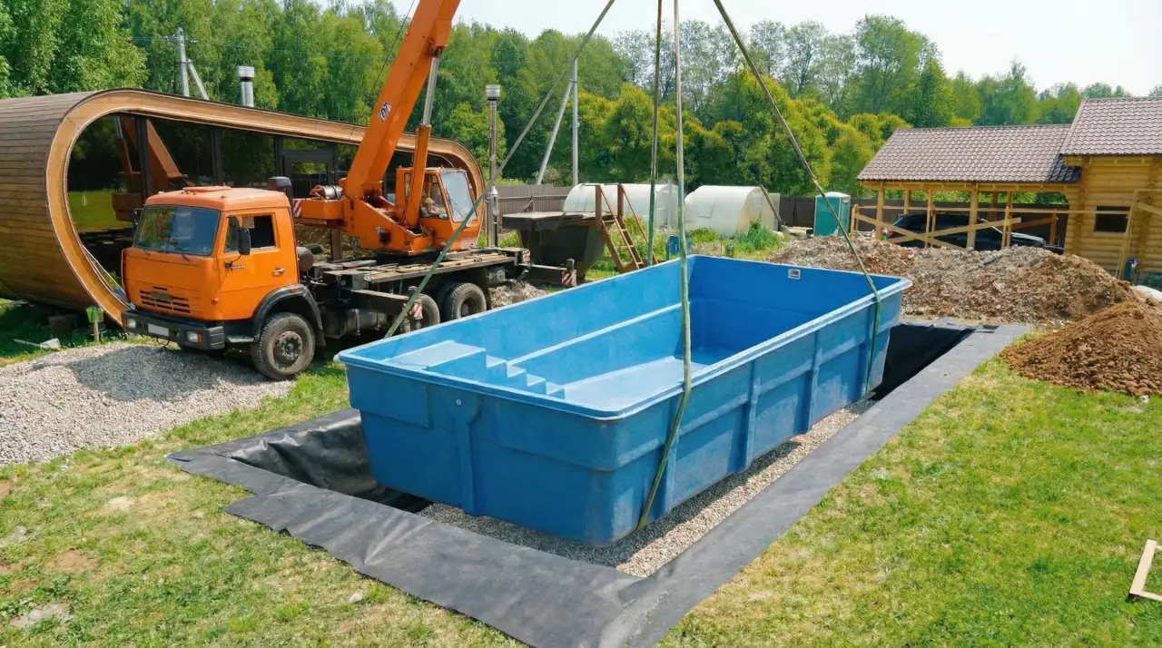 Иногда встречаются нестандартные способы монтажа, например подача чаши через строение или транспортировка по воде. Такие варианты рассматриваются индивидуально. Важно, чтобы разгрузку выполняли специалисты с опытом работы, поскольку неправильные действия могут привести к повреждению бассейна.